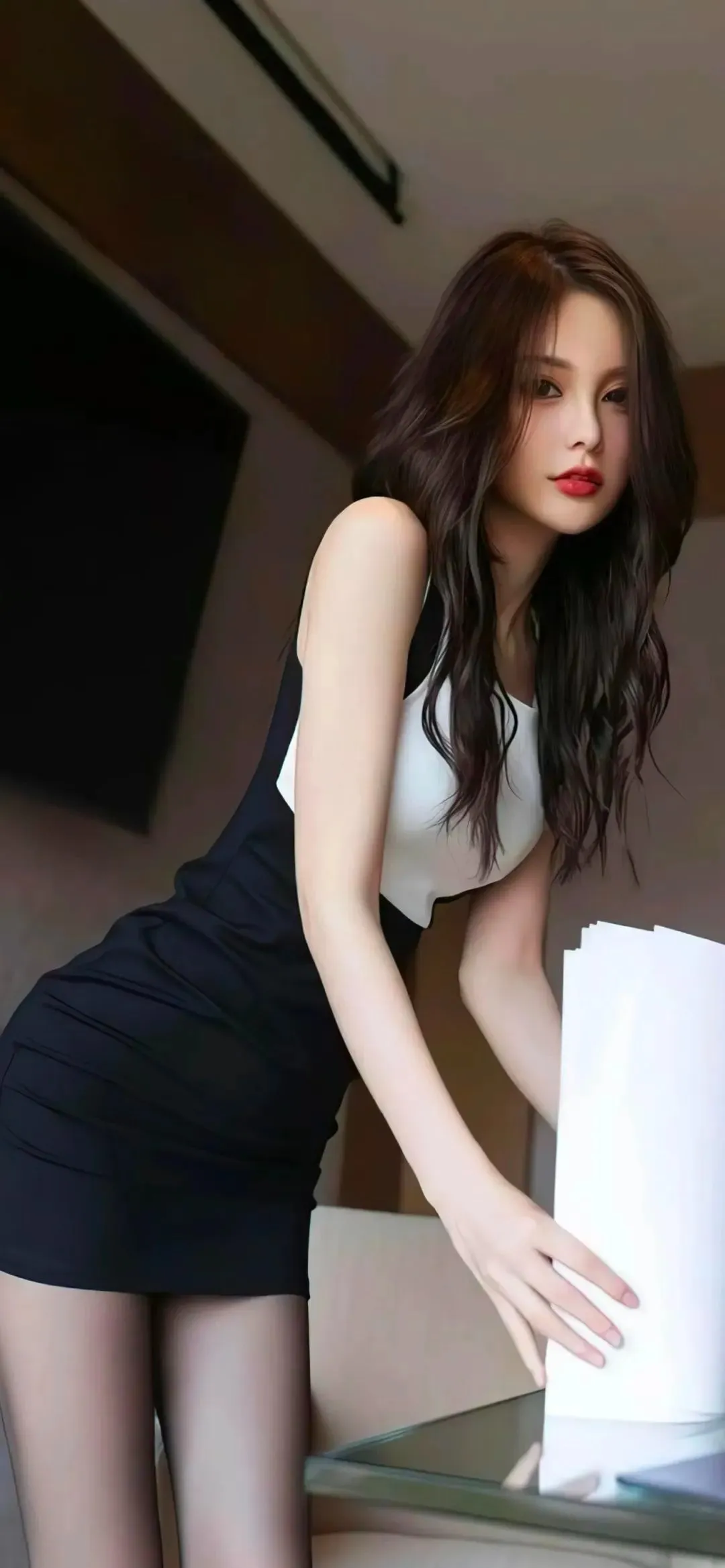 居家 黑色丝袜 性感 红唇 美女诱惑 手机壁纸