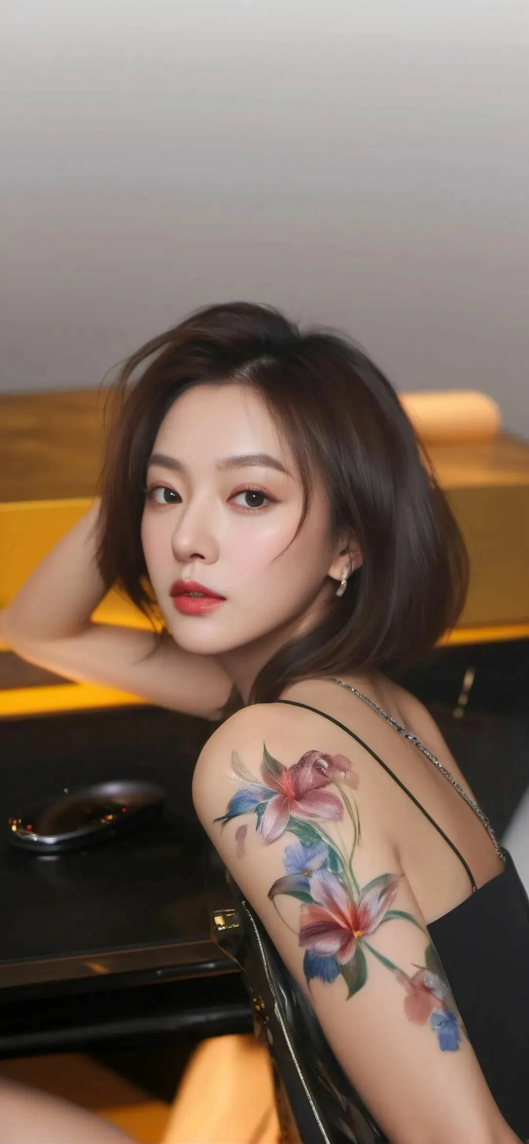 气质短发 纹身 美女 手机壁纸