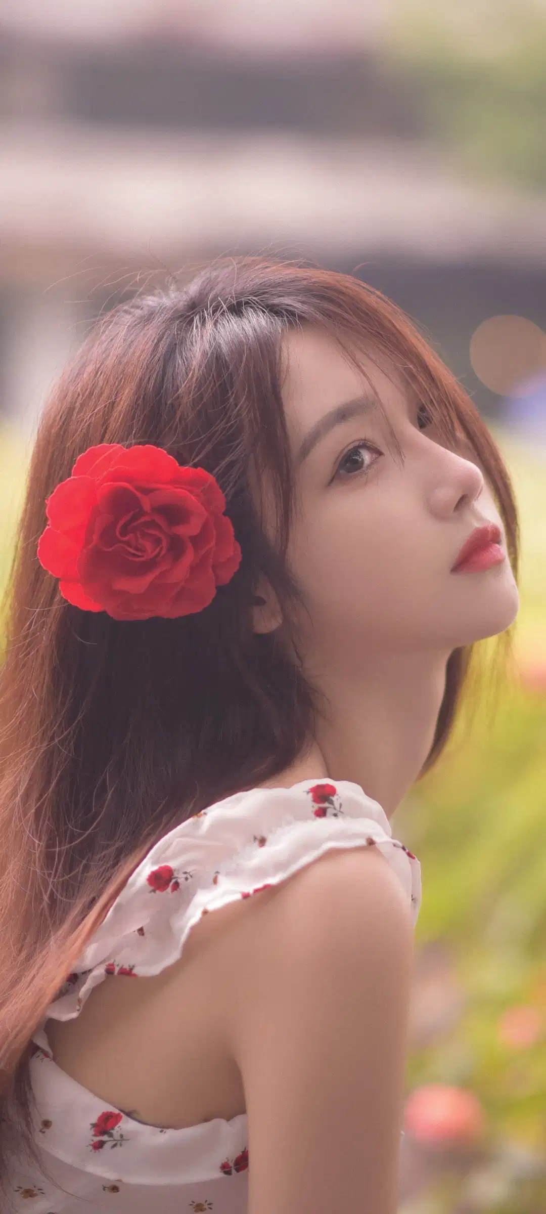侧颜 美女 宋昕冉 头插红花 伤感 手机壁纸